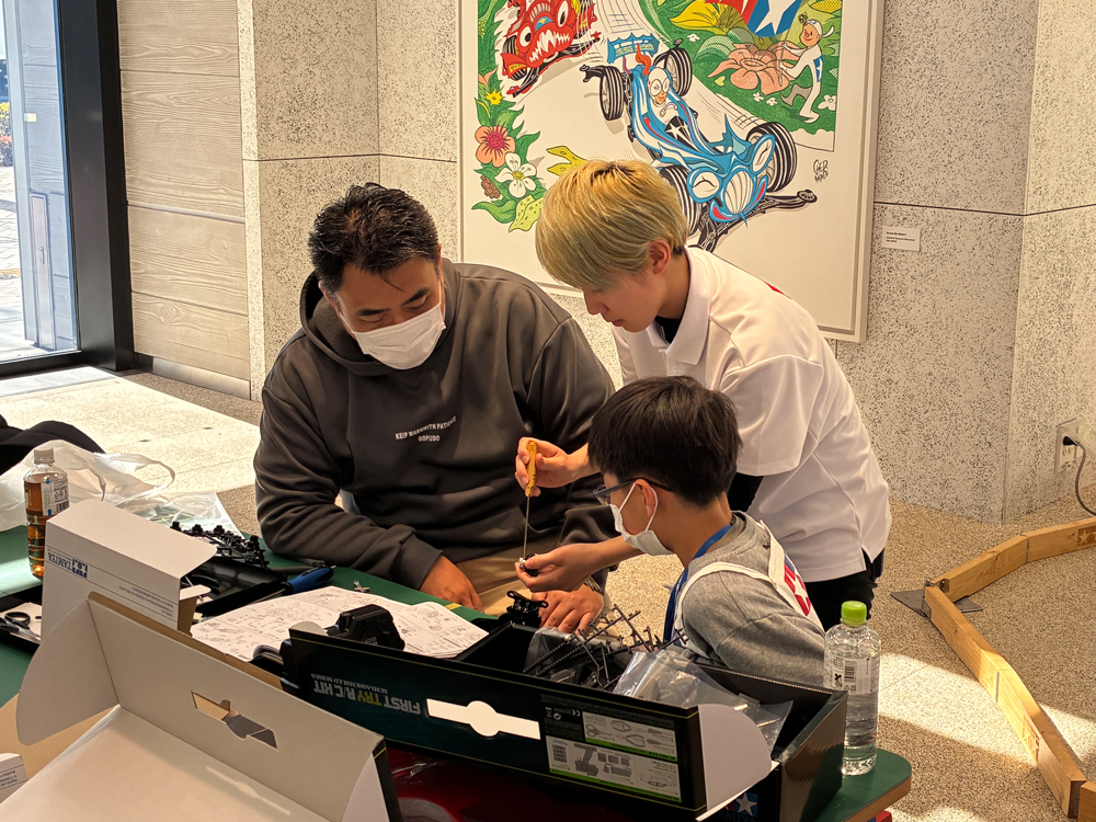 「トライ!!タミヤRCスクール」をTAMIYA PLAMODEL FACTORY TOKYOで開催しました。RCオンロードカー「ライキリ(ファーストトライRCキット) (TT-02シャーシ)」の組み立てから基本走行まで、インストラクターが丁寧にサポート。参加されたみなさんは、楽しくRCカーを完成させました。